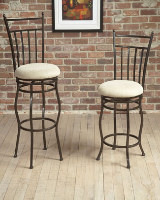 We have barstools in stock in wood or metal frames, different heights, some swivel and some don't. We also have a large selection of barstools that can be custom ordered in fabric or leather in the color you want. Our friendly and courteous sales staff we'll be glad to assist you in selecting the perfect pieces for your room! So come by and see us, we'll be glad to see you.